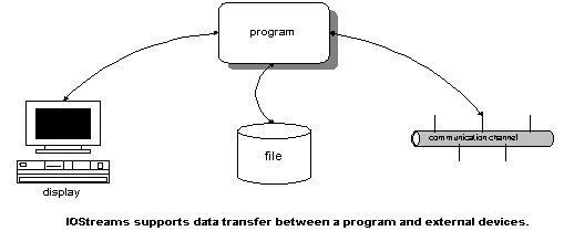 The main purpose of the standard iostreams is to serve as a tool for input and output of text. Generally, input and output are the transfer of data between a program and any kind of external device, as illustrated in Figure 1 below: