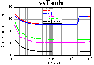 | Function | Input Argument | Result | Default processor | Pentium III processor | Pentium 4 processor | Pentium 4 processor with SSE3 | Itanium 2 processor |