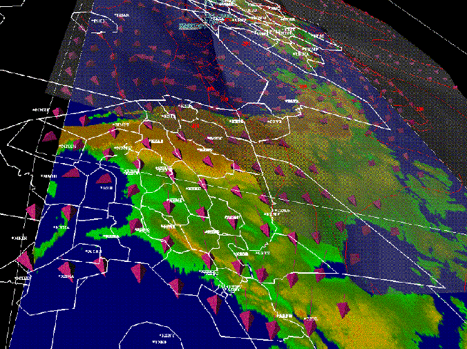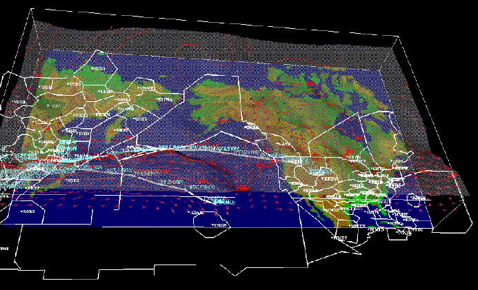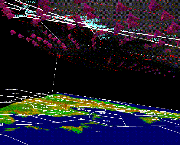Center Japan, combines wind and tropopause information with a terrain